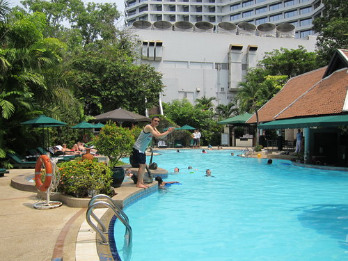 花園泳池,泰休閒...旁邊還有幾隻活生生的孔雀走來走去...