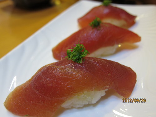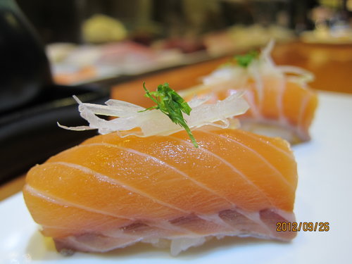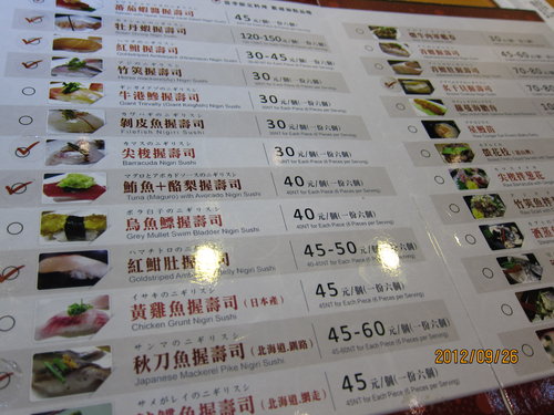一般的鮭魚`鮪魚`旗魚...大多是一貫30元.