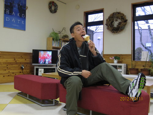 外面大約9度又下著雨,進屋內吹暖氣,吃冰淇淋...