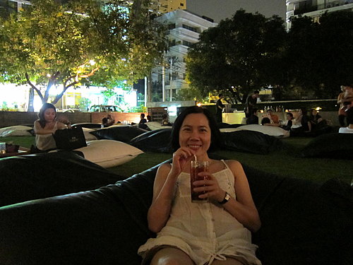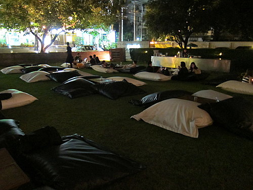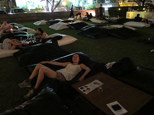 重點是位於2棟建築物之間,有一片草原`店家擺放很多大型懶骨頭在草地上,