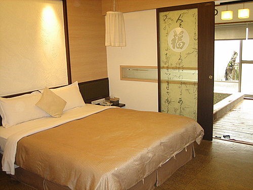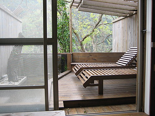 (優點)空氣新鮮`房間內半露天的泡湯池很有FEEL(泡湯時有看到外面樹上可愛的鳥類和松鼠).