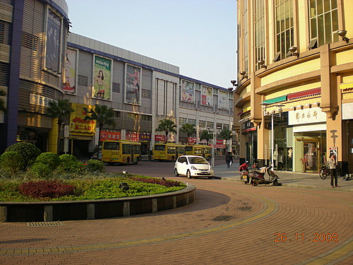 飯店外面蠻熱鬧的,有很多商店和餐廳.