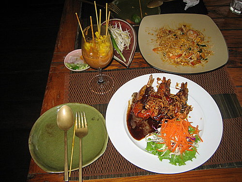 我們點了 泰式炒麵:120B`沙嗲串 100B`泰國蝦160B -----(大概是這個價位)!