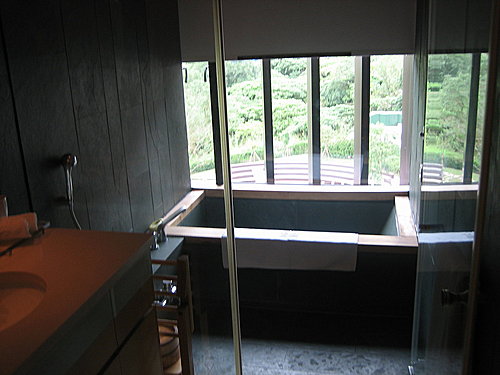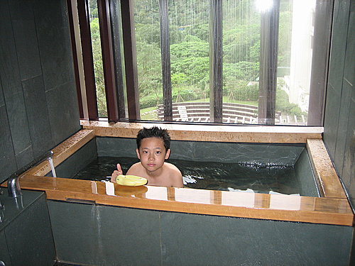 房間內的泡湯池!泡起來蠻舒服的,但是玻璃窗只能打開左邊一小部份,個人覺得比較不足....!