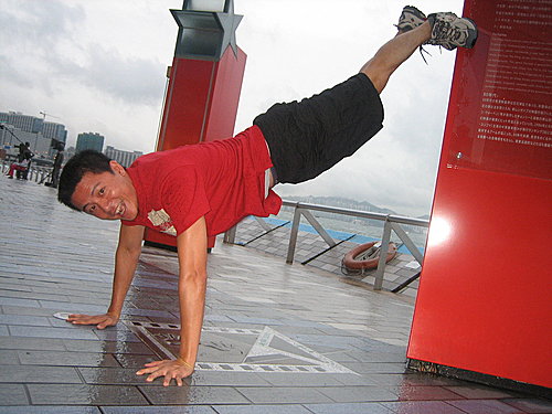 "星光大道"上有很多名星的"手印",應該沒有人用這麼"高難度"的姿勢