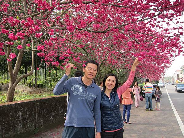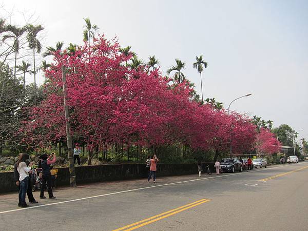 路旁一整排美麗櫻花盛開,很多車子特地停下來拍照!