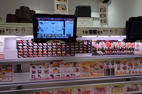 不到幾分鐘,妳點的壽司就會用很快的速度..以快速輸送帶飛奔到妳的座位前方..
