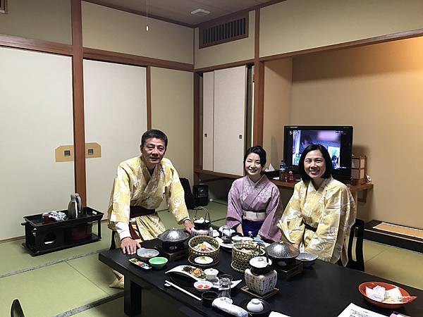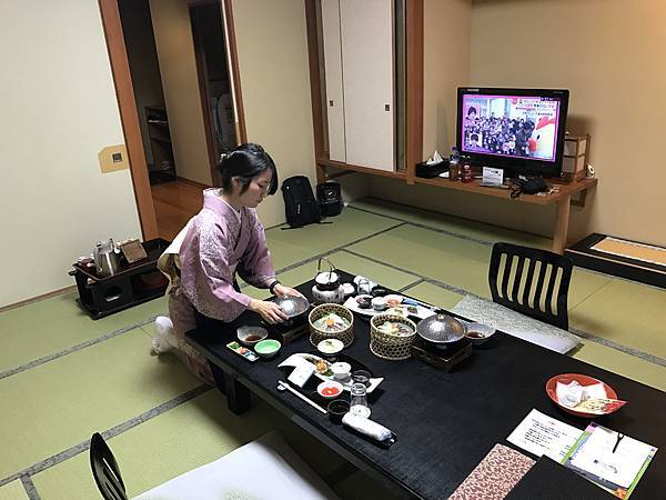 櫃檯會事先確認用餐時間,時間到了就幫我們送到房間享用
