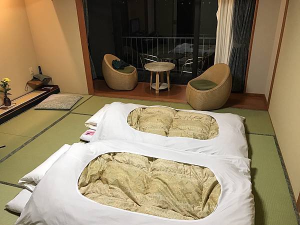 泡完溫泉回來房間,已經整理好並且鋪好床...